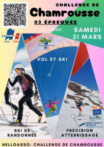 Le challenge de Chamrousse se décompose en 3 épreuves : ski de randonnée + vol et ski + précision d’atterrissage.