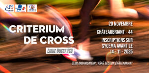 Le critérium de cross et de marche nordique de la Ligue Ouest de la FCD, sera organisé le jeudi 20 novembre 2025 par la section ASAG de Châteaubriant, sur le site des étangs de