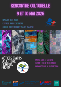 Régional Ligue Auvergne-Rhône-Alpes Du 04/05/2026 au 10/05/2026 Ligue Auvergne – Rhône-Alpes – Salon des métiers d’art Rencontre culturelle autour des Métiers d’Arts, sculpture, peinture, photographie à Montbonnot Saint Martin (38) les 9 et 10 mai 2026.