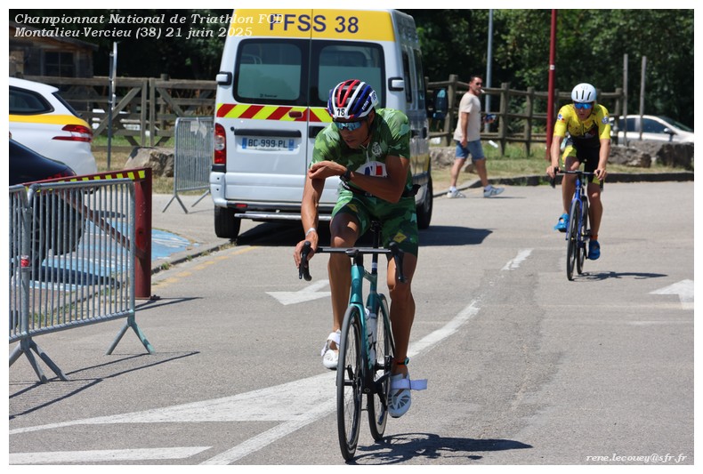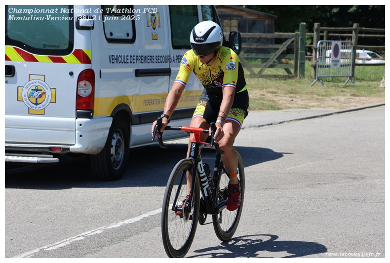 La transition est rapide vers un parcours vélo de 41 km, très technique et vallonné. Le militaire Yanis Seguin (régiment des spahis) prend la tête avec autorité et creuse un écart significatif. Baptiste Passemard reste solide, maintenant sa première place FCD, tandis que ses poursuivants accusent un retard croissant. Il faudra attendre le passage de près de quinze militaires avant de voir apparaître le deuxième FCD.