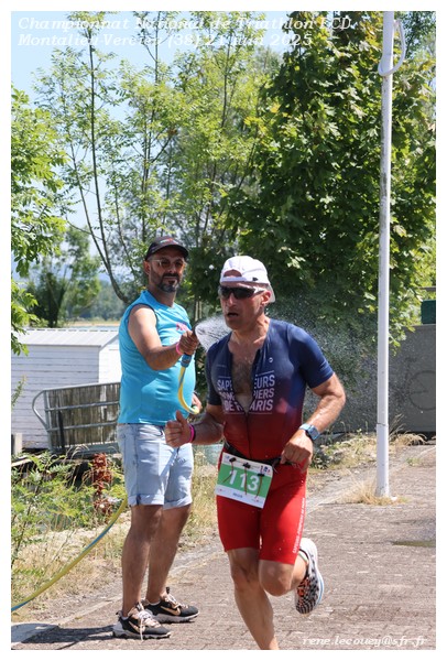 La dernière partie – 10 km de course à pied – se dispute sous une chaleur écrasante, 37°C au compteur. L’organisation prend alors une décision importante : adapter le parcours en quatre boucles de 2,5 km en aller-retour, permettant des points d’arrosage et de ravitaillement plus fréquents. Une initiative saluée par tous pour sa pertinence et son souci de la sécurité.