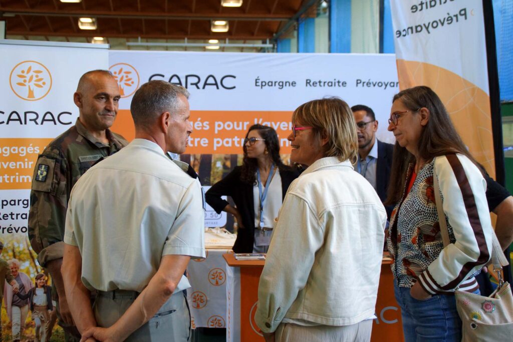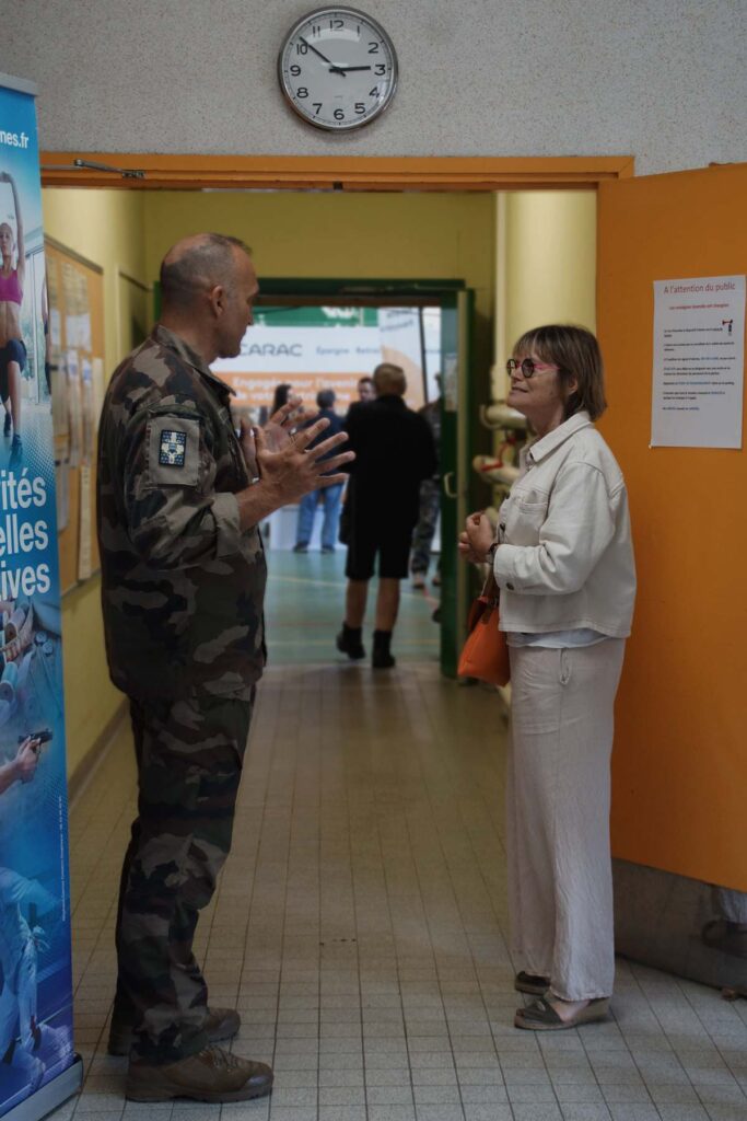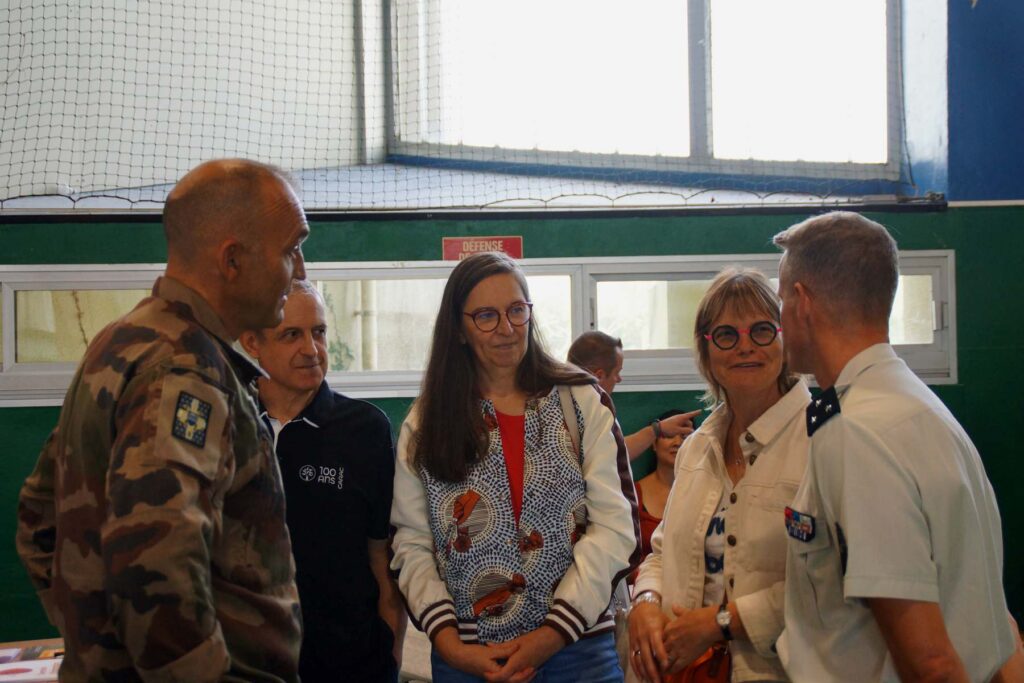 Accueillie par 𝘀𝗼𝗻 𝗽𝗿𝗲́𝘀𝗶𝗱𝗲𝗻𝘁 𝗕𝗲𝗻𝗼𝗶̂𝘁 𝗦𝗔𝗜𝗡𝗧 𝗟𝗢𝗨𝗕𝗘𝗥𝗧-𝗕𝗜𝗘, elle a échangé avec plusieurs responsables de section : plongée, escrime, tir, reliure, danses, natation …