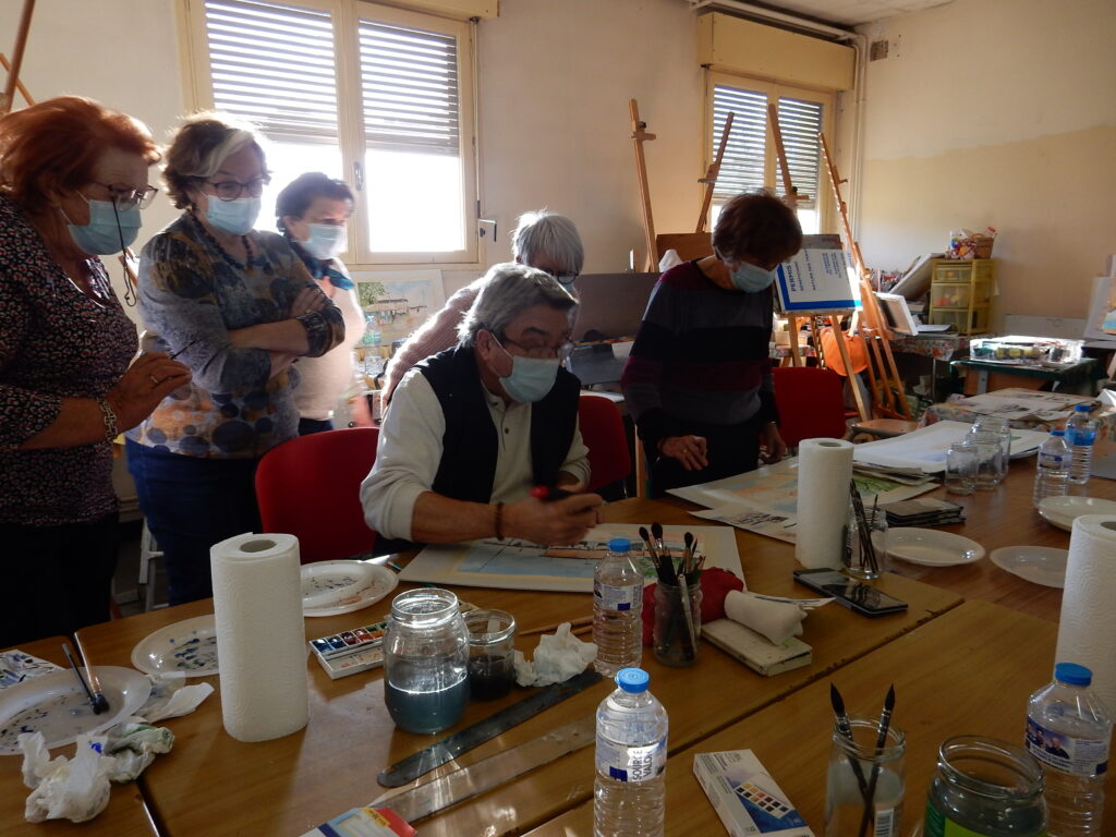 Le résultat des stagiaires aquarellistes au bout de deux jours est étonnant et mérite d’être souligné.  En fin de stage, Ariane Hemar, responsable de la commission culturelle de la ligue Occitanie, est venue rendre visite aux participants.