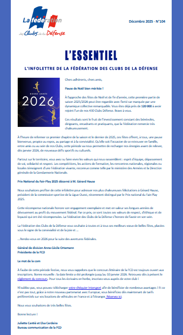Copyright © 2025 — La Fédération des clubs de la défense. Tous les droits réservés. Toutes reproductions interdites.