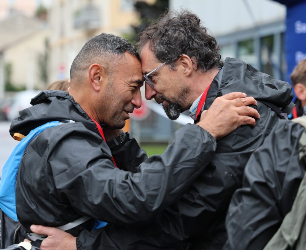 L’arrivée a marqué un moment fort : une étape symbolique dans le parcours de reconstruction et de solidarité avec les partenaires et collaborateurs présents pour les accueillir.